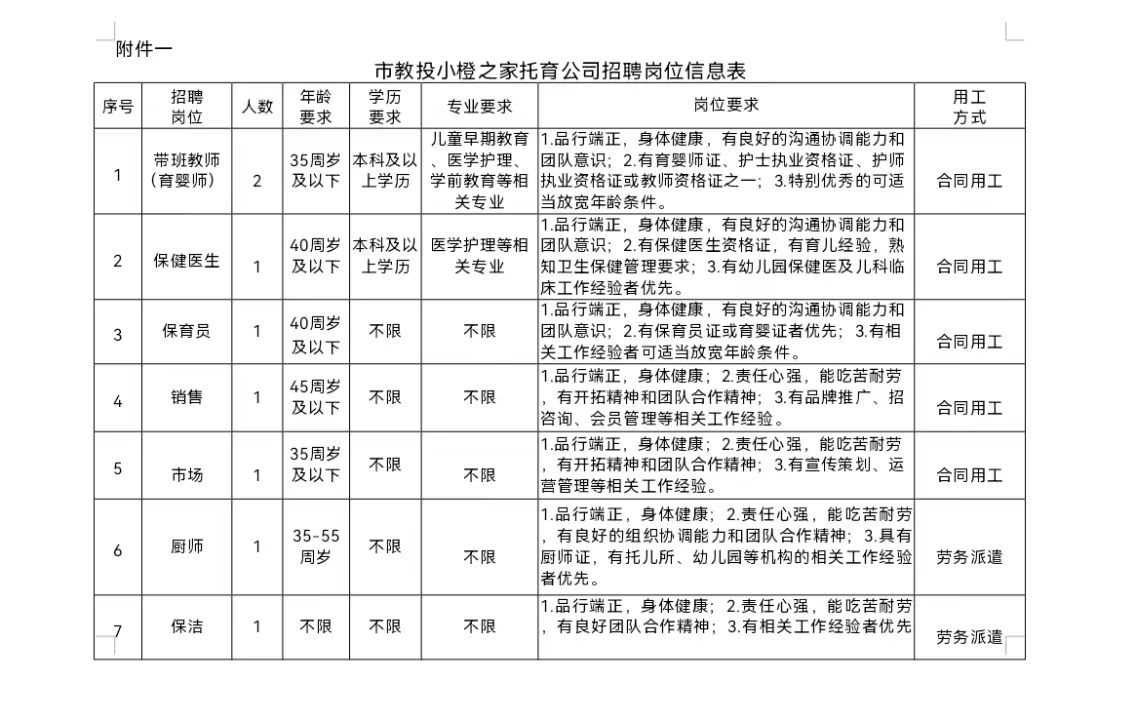 金華市教育投資發展有限公司是金華市城市建設投資集團有限公司(市政府直屬一類國有企業)下屬全資子公司,F因公司下屬小橙之家托育公司工作需要,面向社會公開招聘,現將有關事項公告如下: