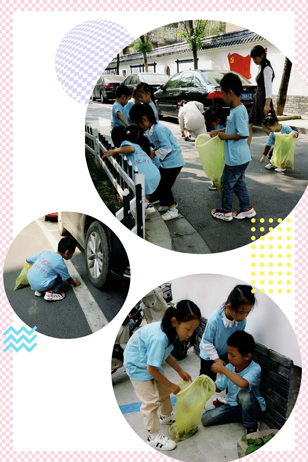 活動中,孩子們在老師們和社區志愿者阿姨們的帶領下,從幼兒園出發,隨手將路面上的垃圾撿起,還社區一個干凈整潔的面貌。一路上,孩子們都很積極,手中的袋子也在不知不覺中慢慢變得沉重。行動中的他們,洋溢著笑臉,是幸福的,也是快樂的!