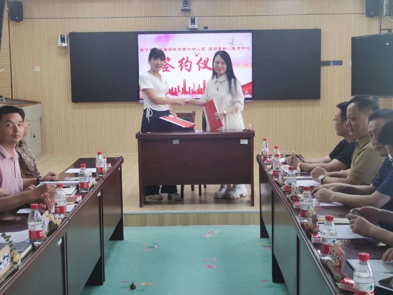 攜手天山下,金溫繪新篇。8月7日,經金華市援疆指揮部、金華市城投集團、溫宿縣教育工委積極溝通對接, 溫宿縣幼兒教育中心與金華市教育投資發展有限公司第七幼兒園開展結對共建暨圖書捐贈儀式,簽訂共建協議,并現場捐贈價值一萬元的圖書,正式建立“手拉手”關系,助推溫宿縣教育高質量發展,深化兩地交往交流交融。