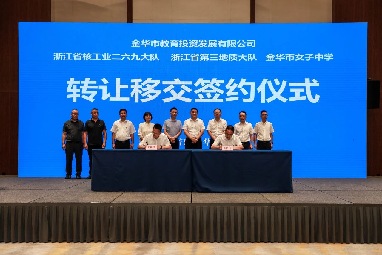金華市教育投資發展有限公司、浙江省第三地質大隊有關負責人進行了學校舉辦權轉讓移交現場簽約。